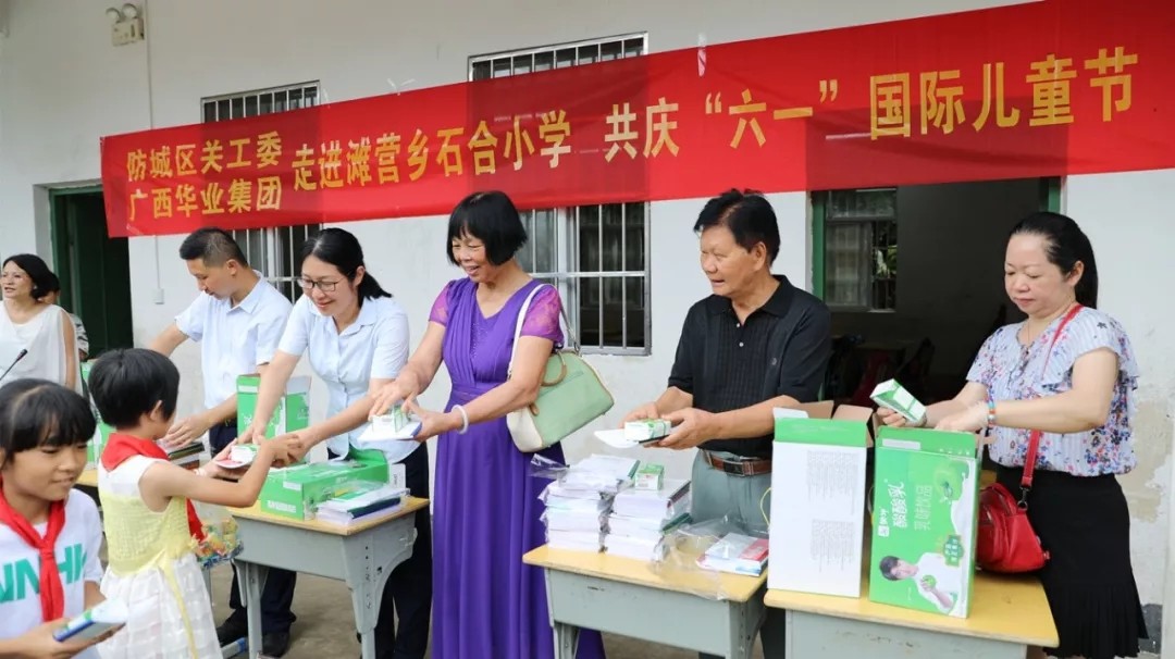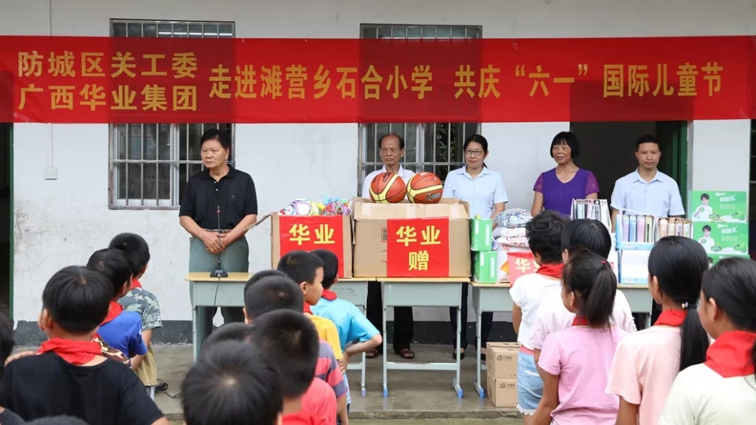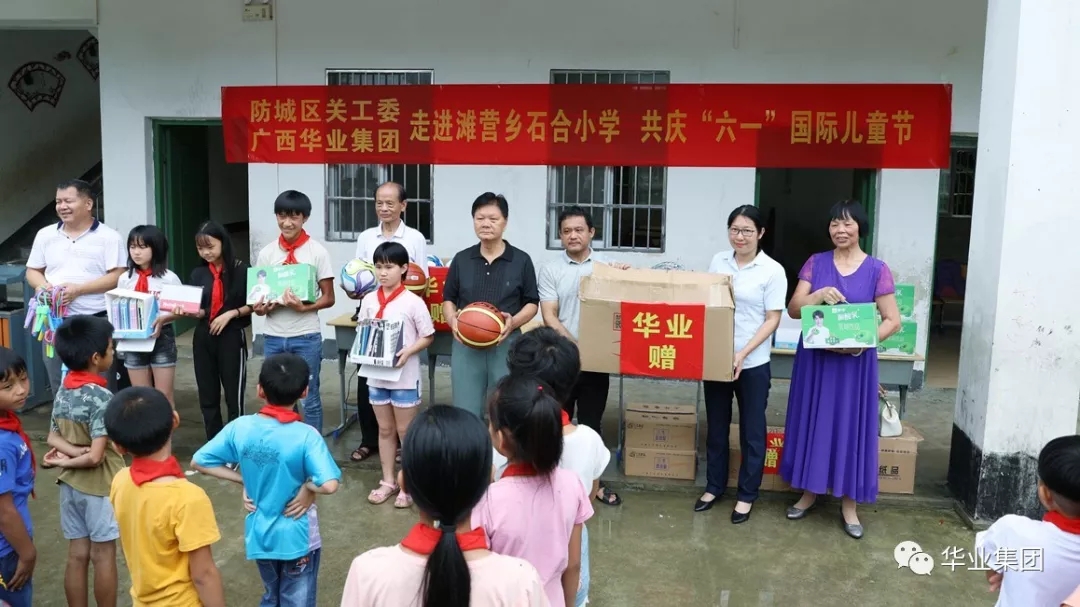 5月28日,在“六一”國際兒童節(jié)即將到來之際,防城區(qū)關(guān)愛下一代工作委員會副主任黃志三、曾其文,廣西華業(yè)投資集團(tuán)工會主席鐘麗霞等領(lǐng)導(dǎo)一行前往防城區(qū)灘營鄉(xiāng)石合村小學(xué),看望全校師生,并送上節(jié)日的問候和祝福。