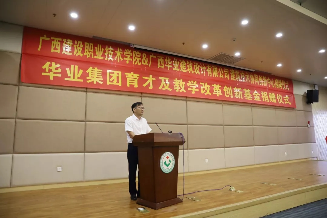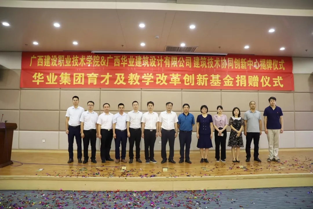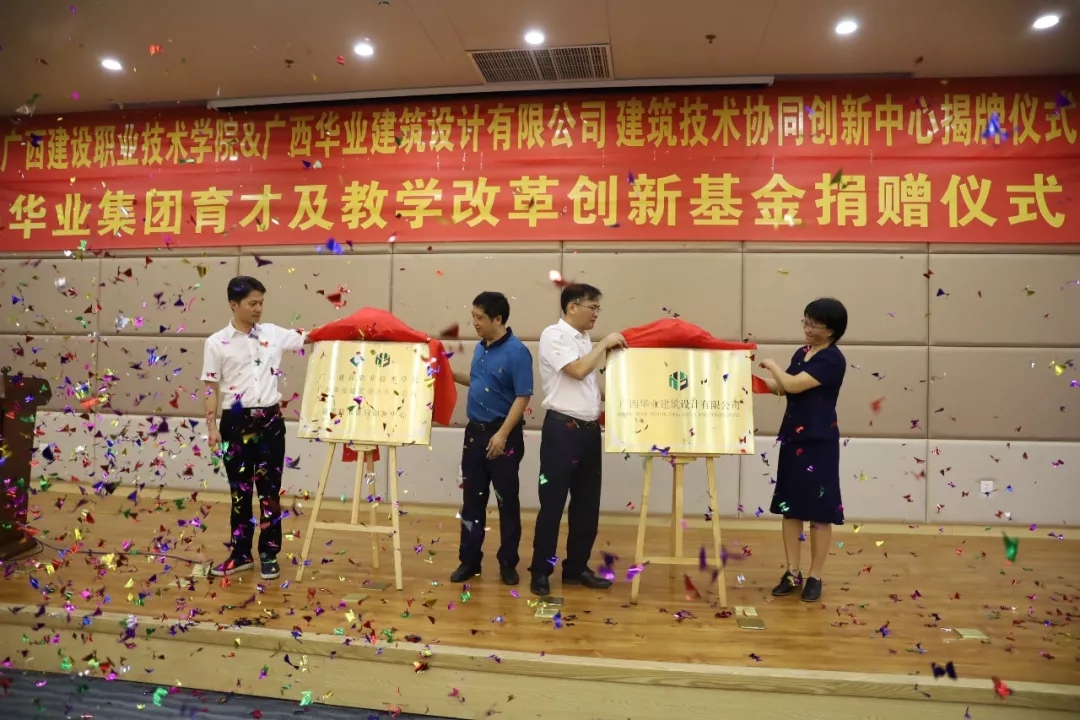 廣西華業(yè)投資集團育才及教學改革創(chuàng)新基金捐贈暨廣西建設職業(yè)技術(shù)學院&廣西華業(yè)建筑設計有限公司建筑技術(shù)協(xié)同創(chuàng)新中心揭牌儀式順利舉行