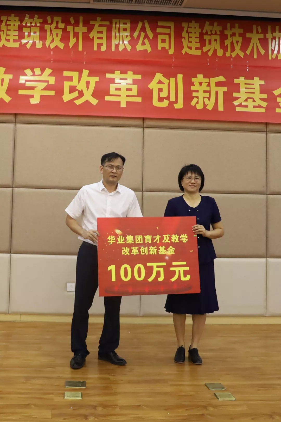 隨后,廖人興副總裁代表華業(yè)集團向廣西建設職業(yè)技術(shù)學院捐贈100萬元人民幣設立華業(yè)集團育才及教學改革創(chuàng)新基金,廣西建設職業(yè)技術(shù)學院土木工程系主任姚琦代表學院接受捐贈,并對華業(yè)集團慷慨解囊表示衷心感謝。華業(yè)集團育才及教學改革創(chuàng)新基金的設立,充分體現(xiàn)了華業(yè)集團對深入開展校企合作、精準落實教育教學改革、培養(yǎng)專業(yè)型人才的堅定決心和信心。